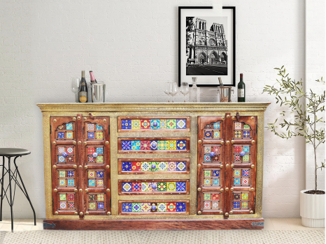 We have Bar Cabinets, Cupboards, Chairs, Dressing Tables, Bed side tables, Chest of Drawers, couches, Sofas and much more in solid wood. While some items in this collection can be re-created on demand others are available only for a limited period. Look out for the 'sold' tag to make sure which item is actually available. You may call us if you have some special requirement.