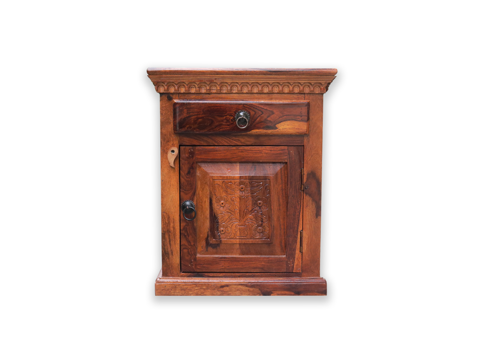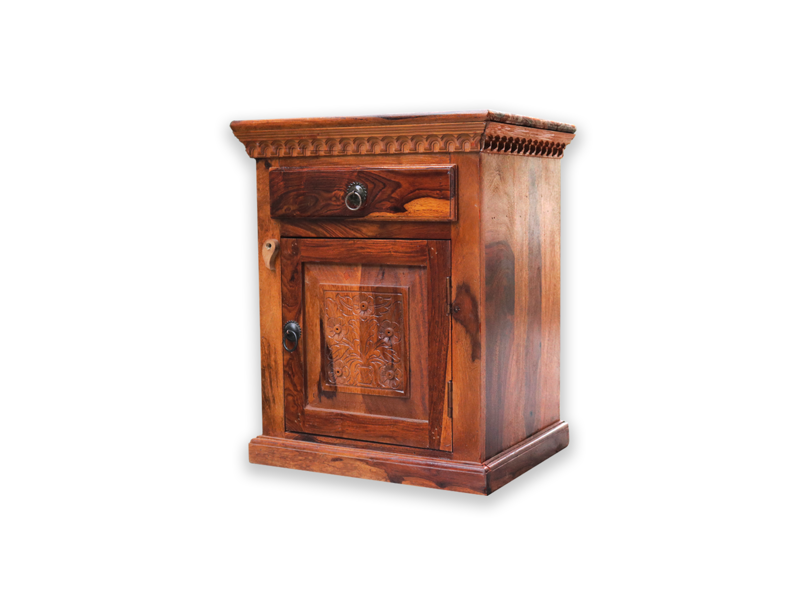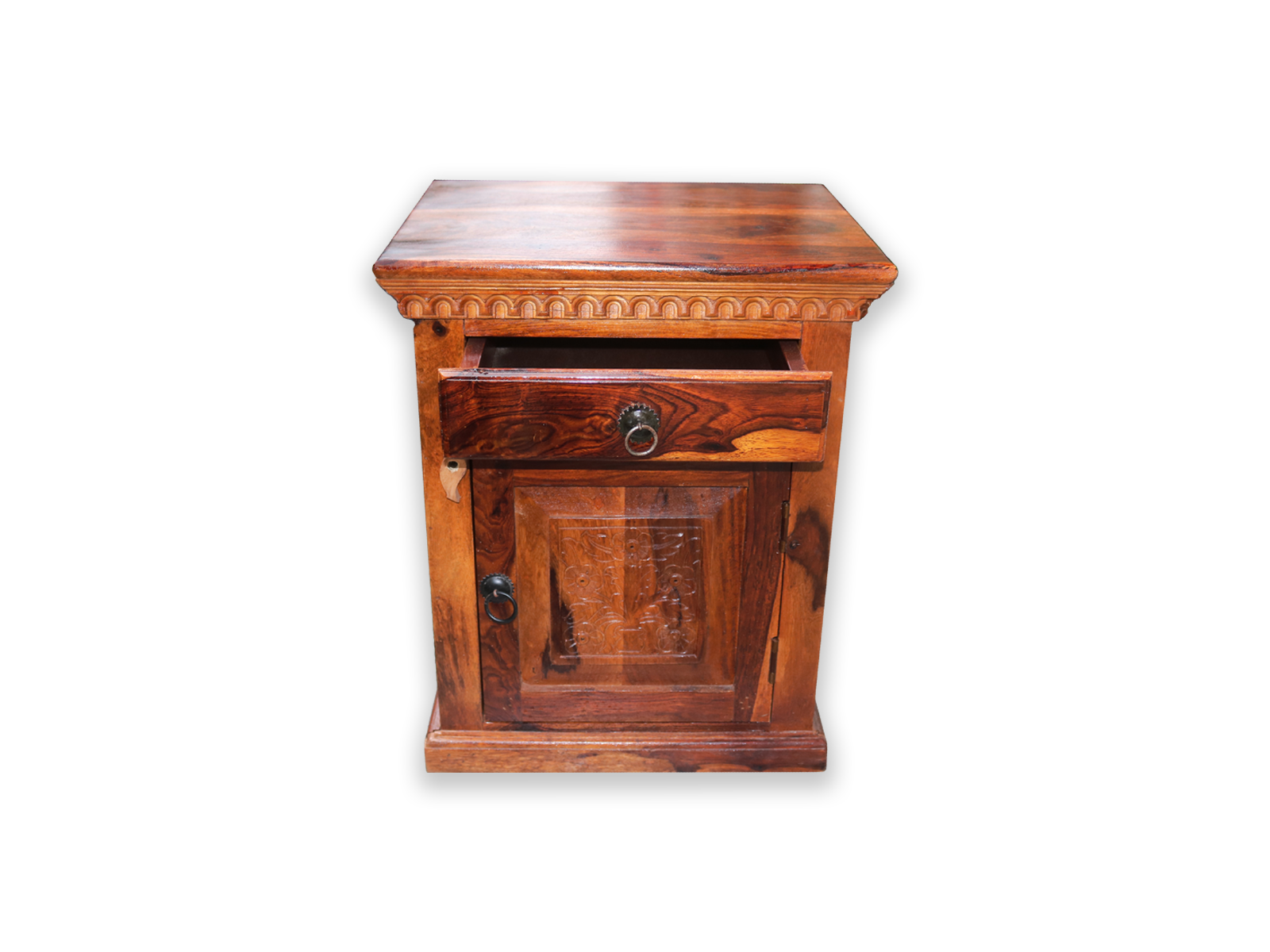 Carving Bed Side Table | Very Good Condition | Wooden Top | Made in Sheesham wood | Durable | Easy to Clean | walnut color |