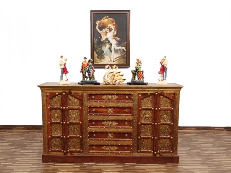 Maharaja Brass Fitted Side board | Made in Sheesham Wood | Excellent Condition | Durable | Storage Capacity | Attaractive Look | Smooth Drawer | 4 Door and 5 Drawer 2 Shelf |
