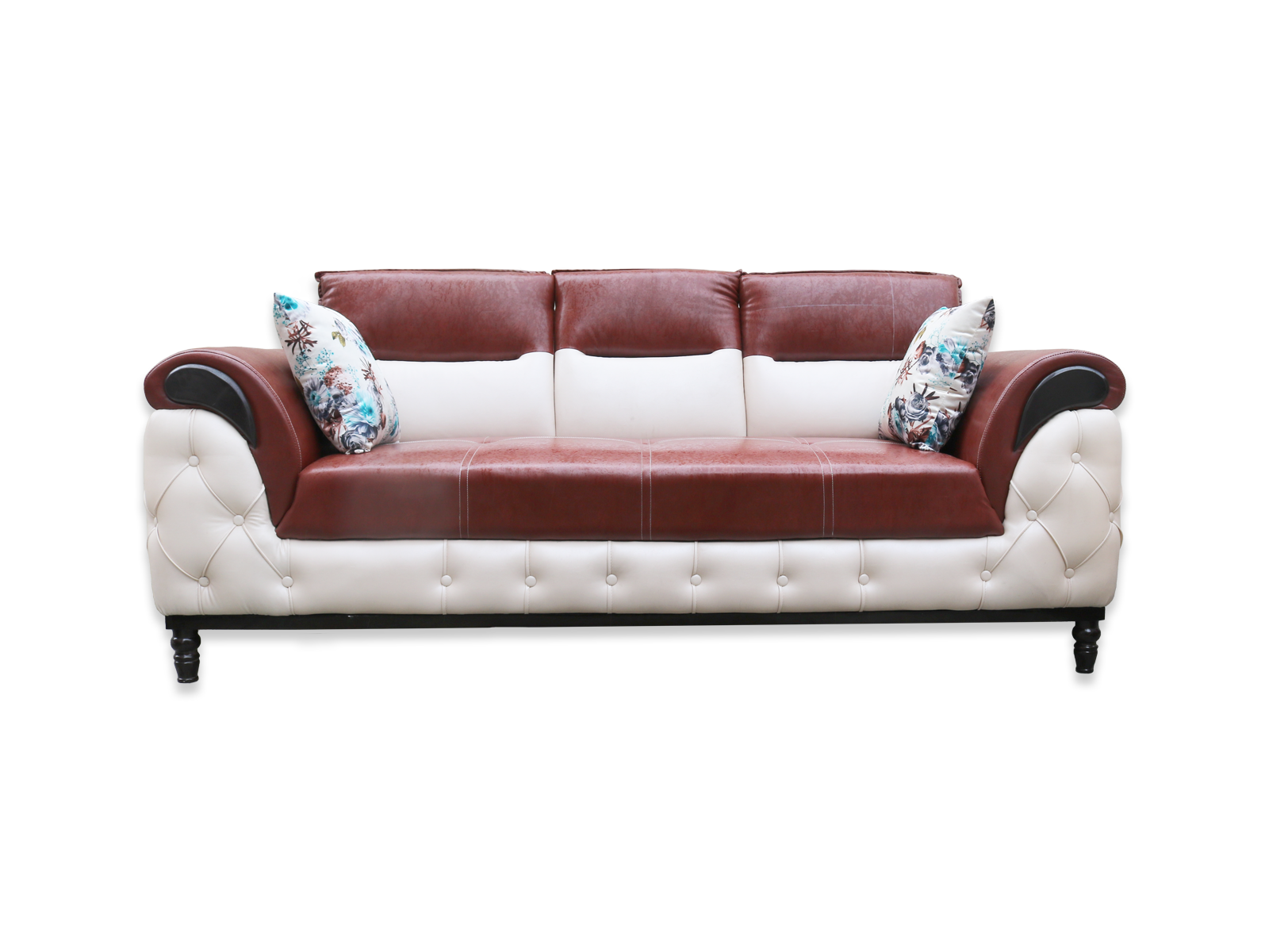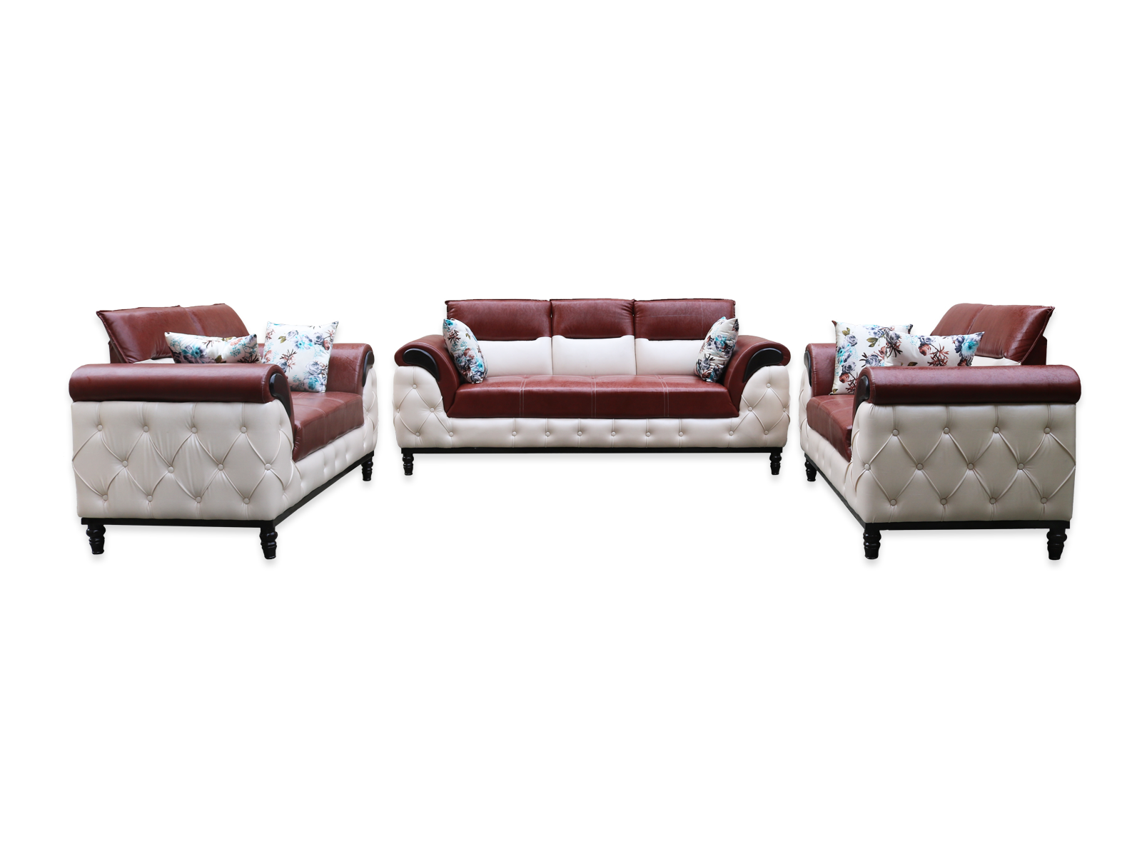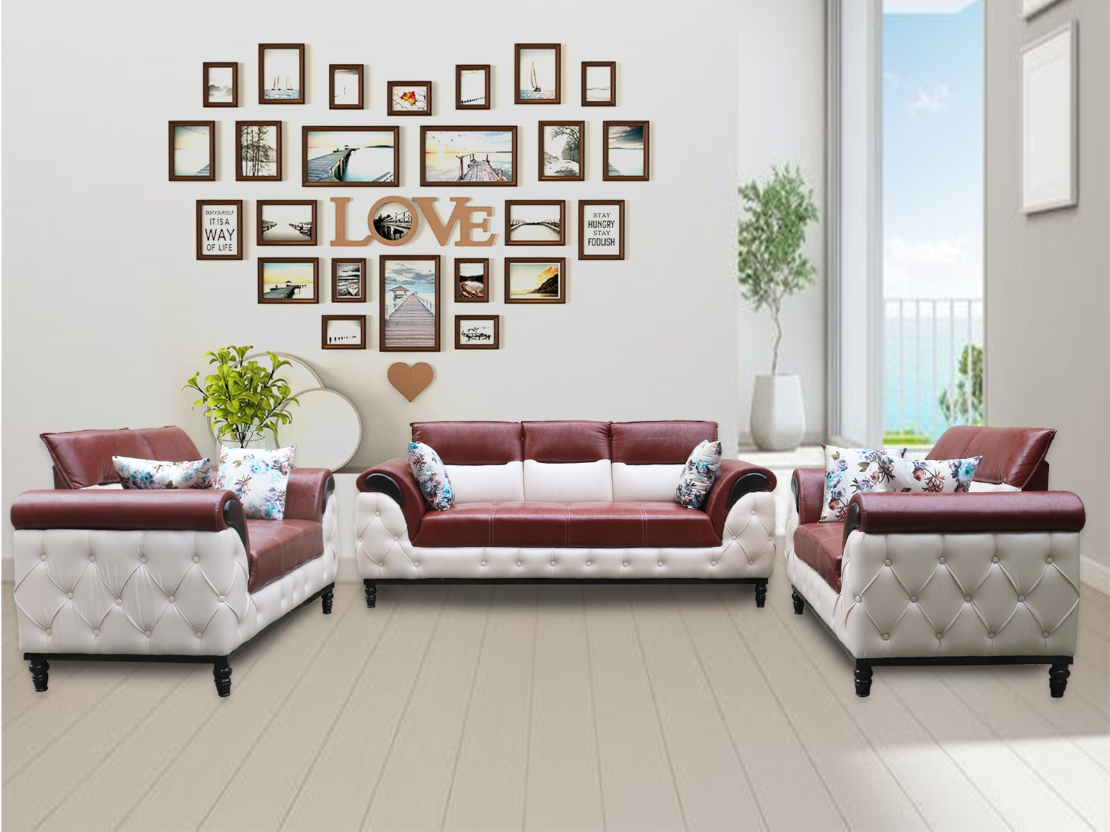 Savior 2+2+3 Seater Sofa | Durable | Contemporary Style | Solid Meranti Wood Structure | Comfortable | Attractive Look | Imported Sofa | Made in Quality Fabric | Seven Seating Capacity | Upholstery Material Leather | Color Shade White & Light Brown |