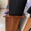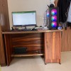 blanca engineered wood queen bed in teak finish with 6 inch premium mattress