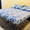 blanca engineered wood queen bed in teak finish with 6 inch premium mattress