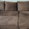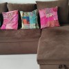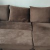 l-shaped sectional sofa cum bed in very good condition as good as new, coffee colour velvet upholstery with storage, useful for small and big room.