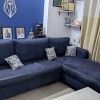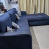 blue color, l shape, 5 seater, sofa set with white cusions