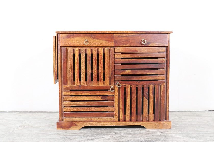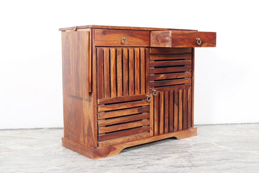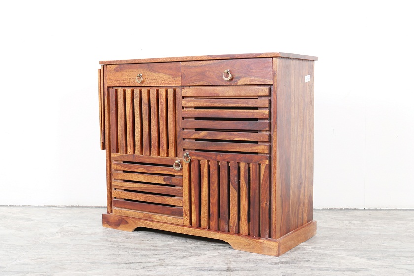 Sleek and Modern design for your home. Shows the grains and grace of the wood. It’s an art of Indian handicraft made in Sheesham wood. There is a royal and contemporary touch to the design. More Storage Capacity with 3 Shelves, 2 Droz and 2 Doors.